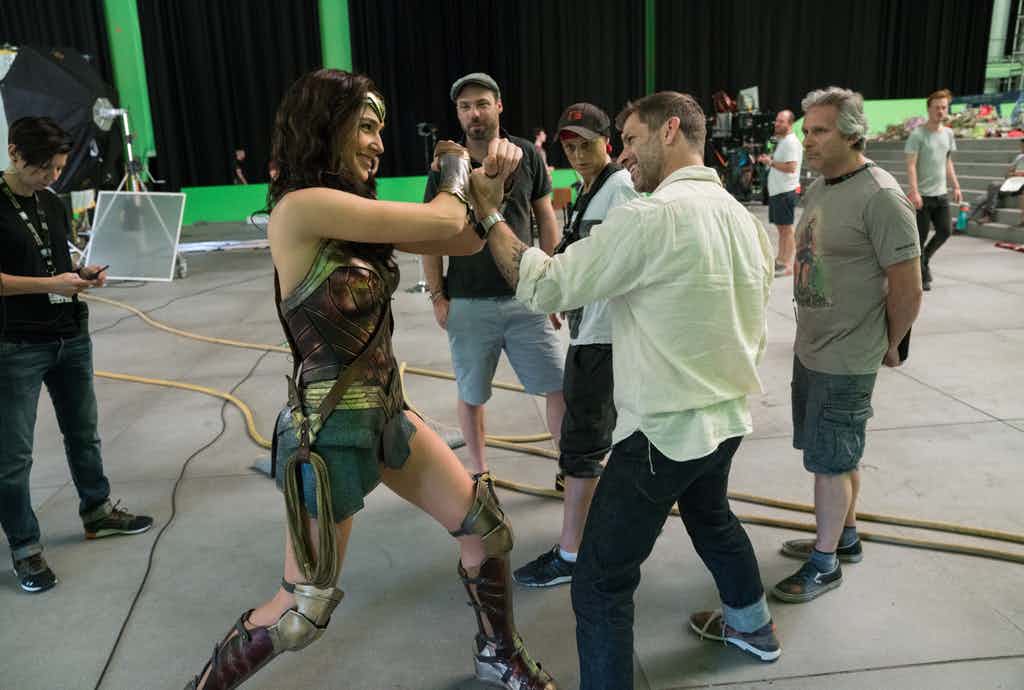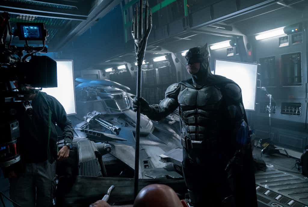 Batman wields Aquaman’s trident, Aquaman takes direction, Cyborg enjoys his high school football days (while they last) and Wonder Woman matches her mighty braces against the overwhelming might of a director’s watch, in a new crop of photos mined from Zack Snyder’s Vero page (courtesy of Screen Rant).