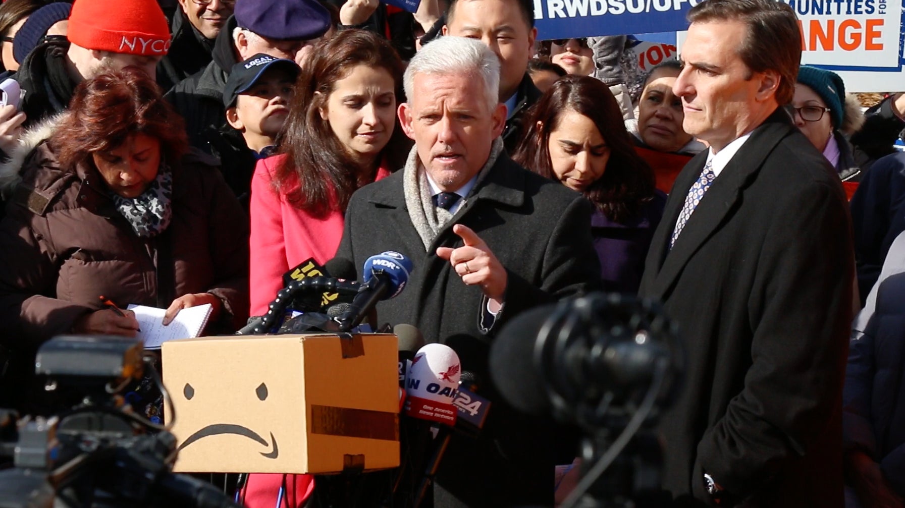 “We are here to say to Amazon: Take that welcome mat that was rolled out for you yesterday, put it back in the package it came in, and send it back to Seattle where it belongs,” Gianaris told the crowd. He claimed to have recently deleted the Amazon app, refusing to purchase anything through the ecommerce platform and encouraging others to do the same.