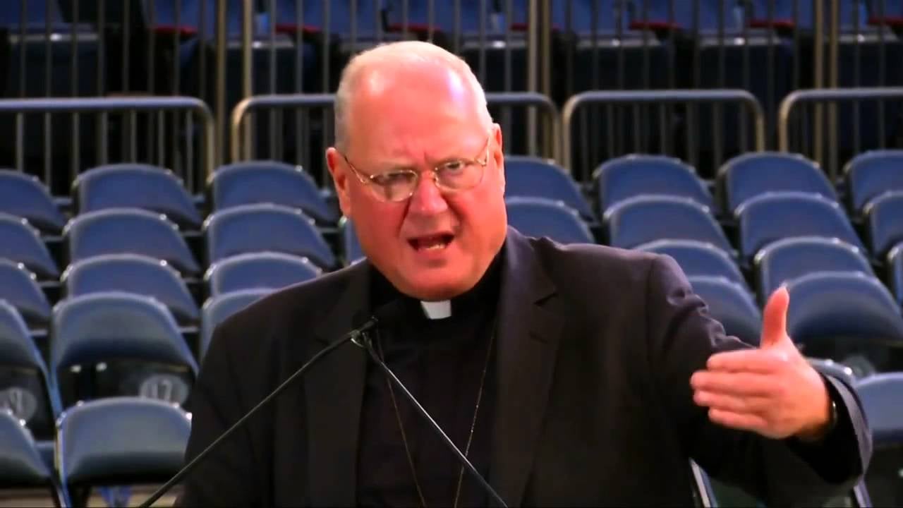 Archbishop of New York Cardinal Timothy Dolan unveils the chair at Madison Square Garden