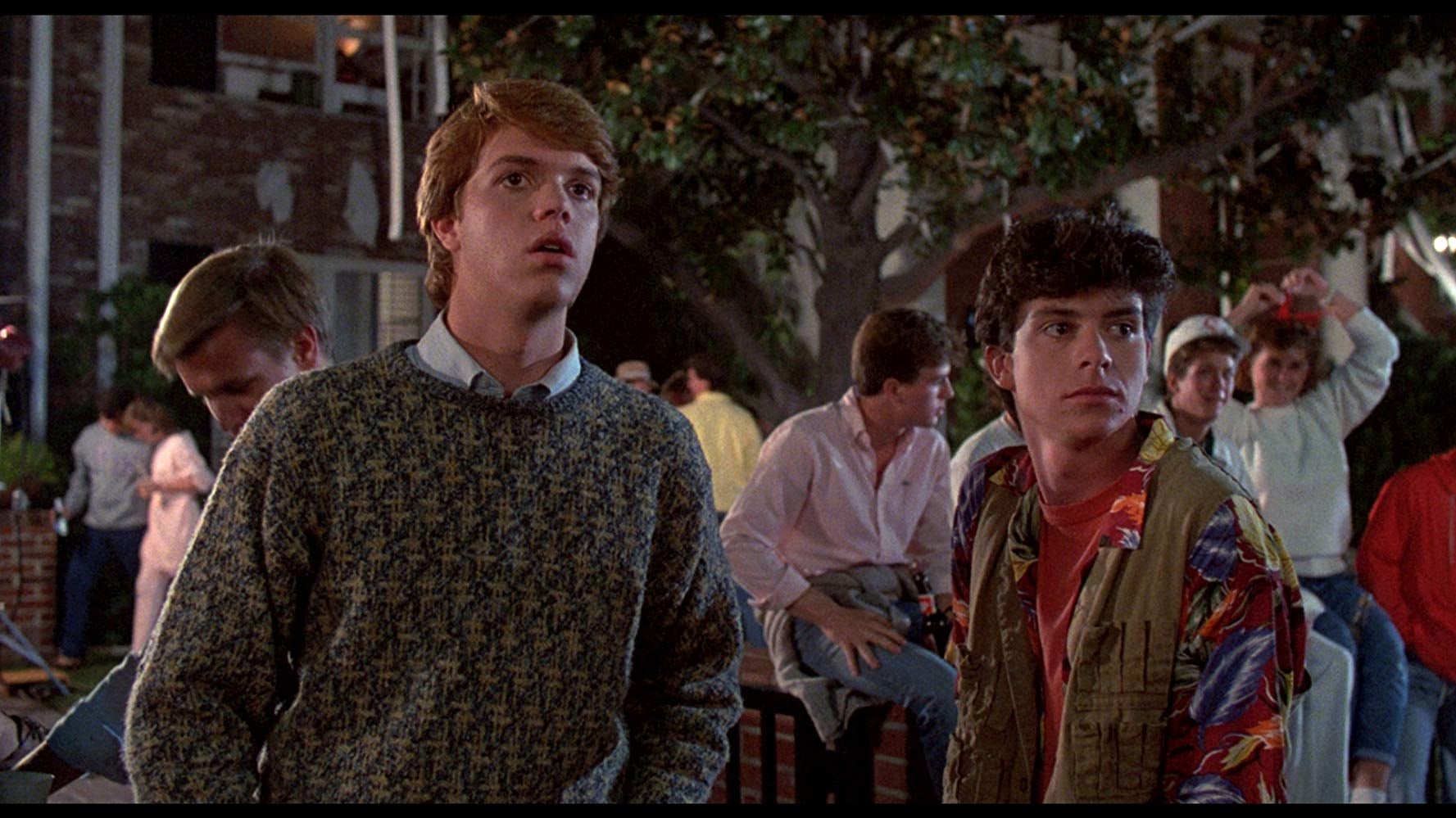 So, right off the bat, you’re expecting Revenge of the Nerds meets Critters, and Dekker gives you a Star Wars homage meets a 1950s sitcom. It’s jarring and kind of awesome. From there, the film goes back to color and we find ourselves at a row of sorority and frat houses on a 1986 college campus. You’re thinking, “How does this line up with what happened before? Did someone mistakenly edit in scenes from another movie at the beginning of this?”