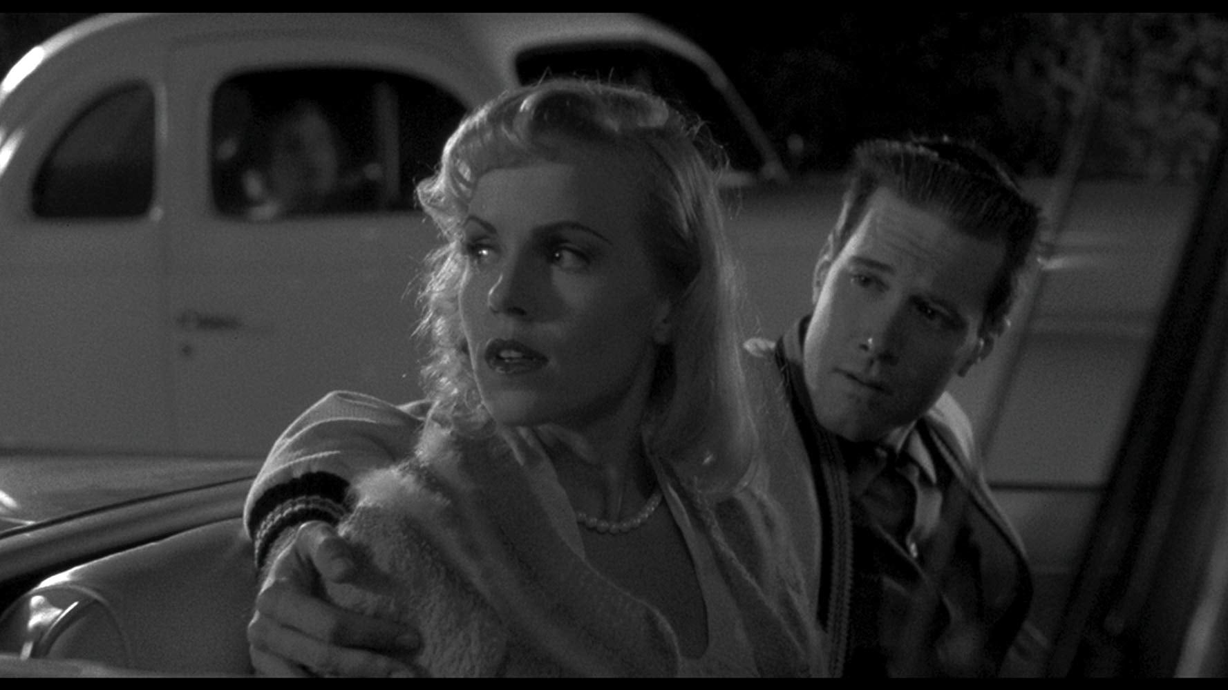 One place Night of the Creeps gets that balance right is at the beginning. The film has basically the same opening as Star Wars: Some bad guys on a spaceship (who are, in this case, aliens) try to recover a special package from a good guy/alien who shoots the package off of the spaceship. It then lands on a random planet—in this case, Earth. That’s all in color. Cut to 1959 and the whole film goes to black and white as we see the first casualties of this alien invasion.