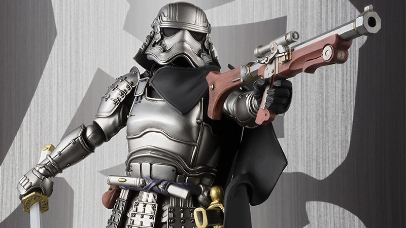 The latest in Bandai’s line of samurai-zed Star Wars heroes and villains is here, and it’s none other than Captain Phasma. Unsurprisingly, like the First Order Stormtrooper before her, Phasma’s design translates wonderfully to the samurai aesthetic that makes these figures so fun—throw in her swanky cape, all sharp lines and severe collars here, as well as a katana and rifle, and you’ve got all the makings of a very nice toy…which it should be, as the good Captain will set you back roughly $90 when she hits shelves in Japan in November. [Toyark]