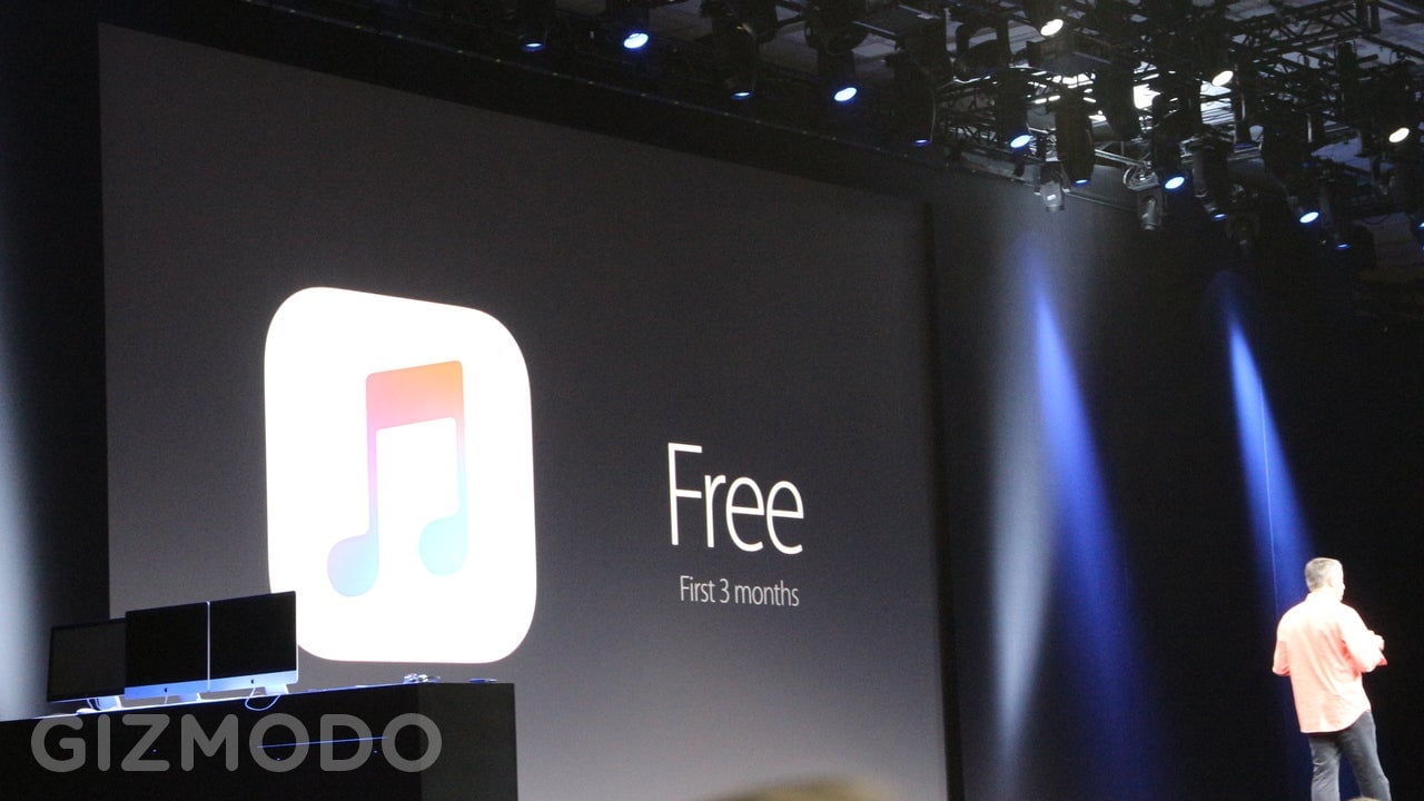 Coming end of month, June 30th to Apple devices in 100 countries. And, uh, Apple Music is COMING TO ANDROID TOO this fall! Wow they blew past that slide which had a picture of it on an Android phone and tablet. First three months free, $10 a month, $14.99 a month for family plan for up to six family members.