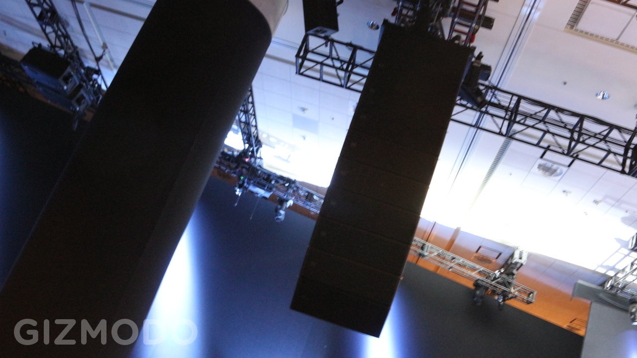 Just got the five-minute warning that we’re about to begin. Plus some Uptown Funk. There’s some serious bass here, folks. Now that Apple owns Beats, they sure don’t skimp on the sound system.