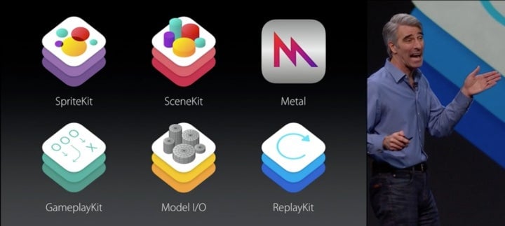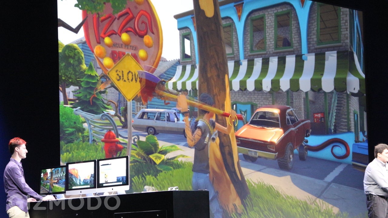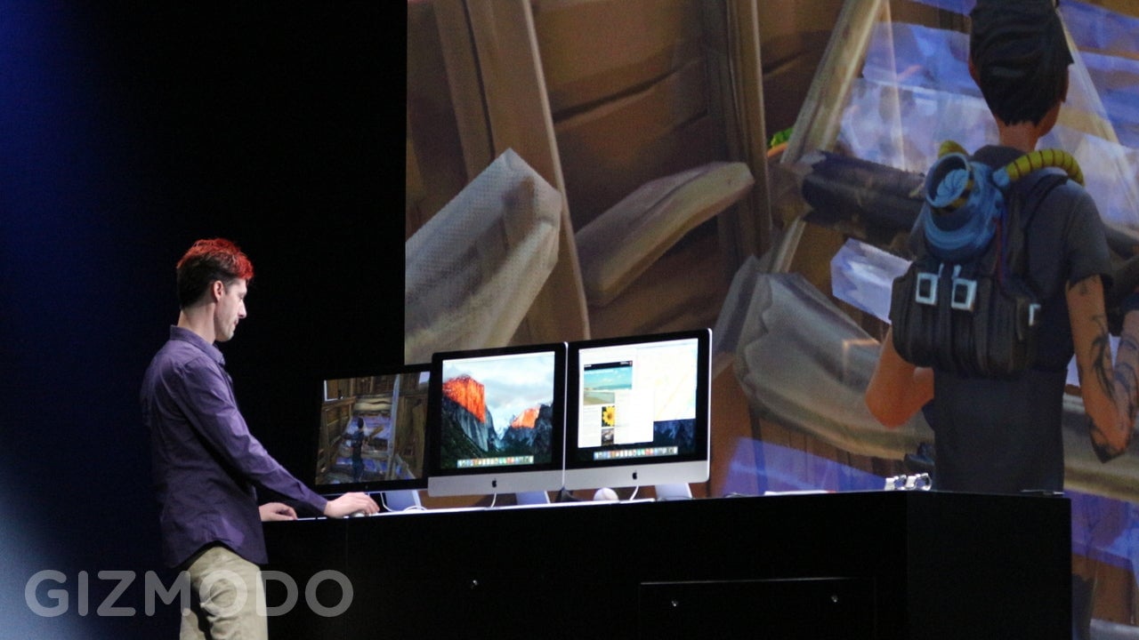 Metal is coming to the Mac. I know, I know, they’re already made of metal, but Metal the graphics API will let software have low-level access to graphics hardware (like a game console, is how they typically pitch it) to make your apps faster. Epic Games is here to talk about how well Metal works with a (mildly) graphically intensive demo.