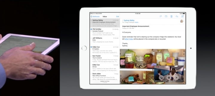 Oh, but only if you’ve got a pretty new device… the “swipe in an app from the right” and picture in picture are only on iPad Air, Air 2, Mini 2 and Mini 3.