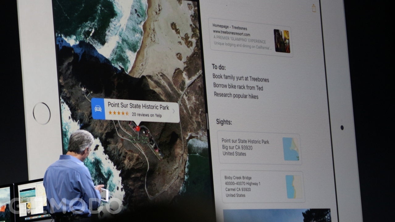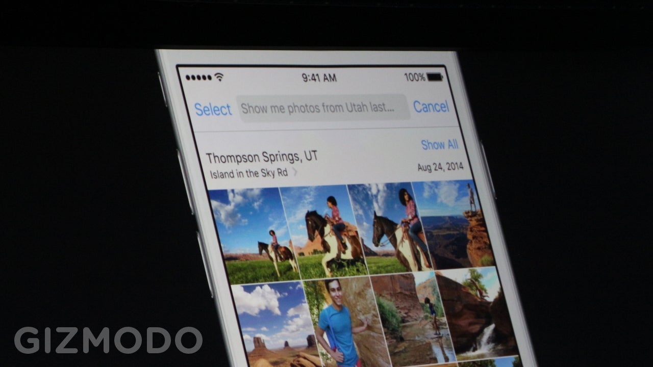 Federighi’s talking Siri now, and I’m getting flashbacks to Google I/O and Google Now. Siri has been getting way better at predicting what we want, says Apple, with a far lower word error rate. Some things Siri can do: find photos from Utah fall, give you driving directions when your calendar item is coming up, etc.