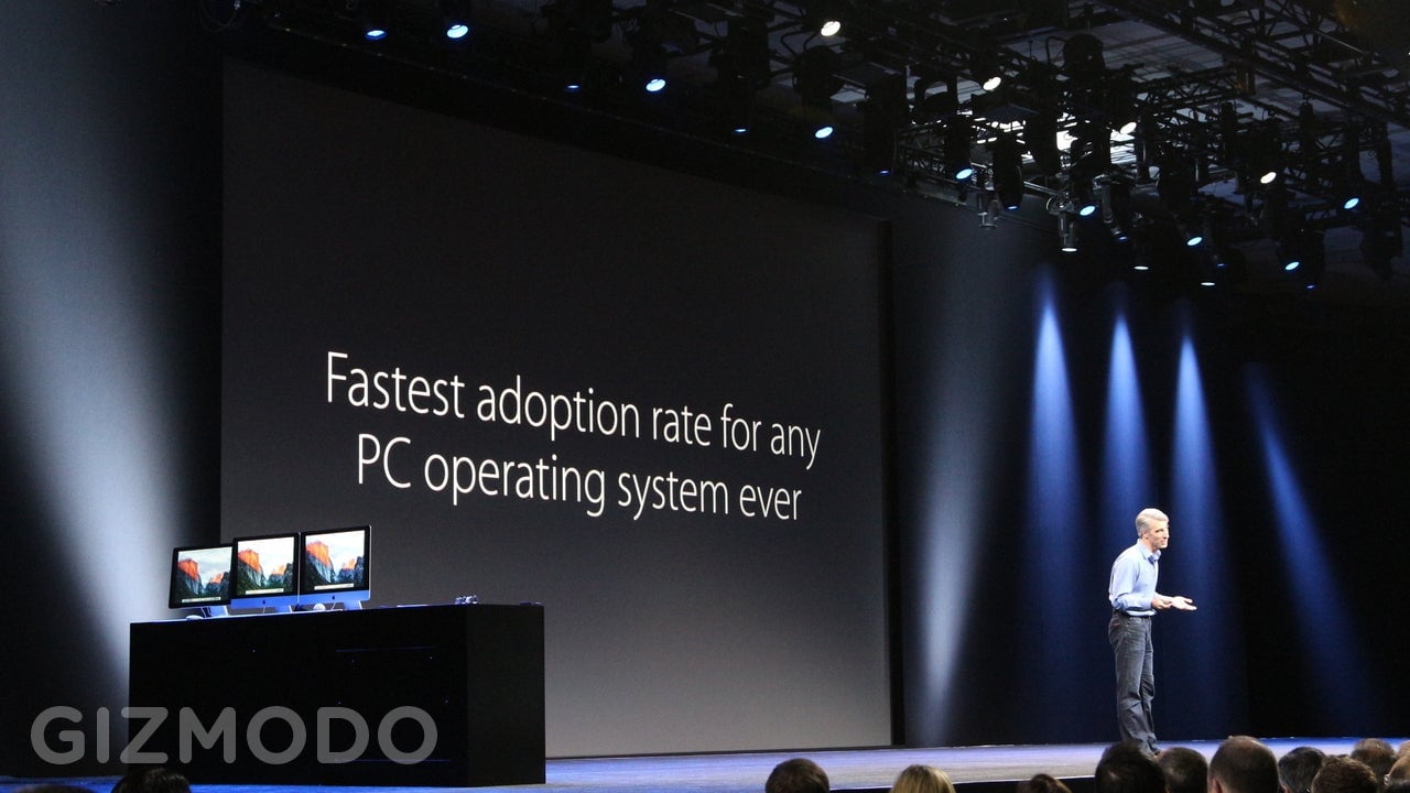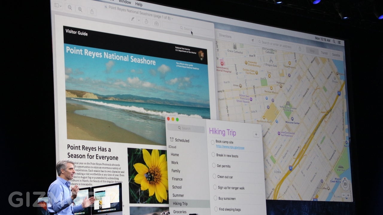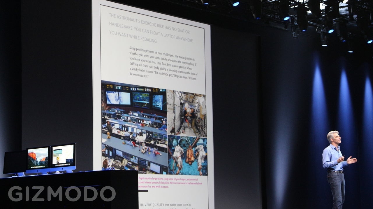 “I’m going to dispense with my normal updates other than to tell you everything’s great,” says Cook. And with no further ado, Craig Federighi to walk us through the new Apple OS X and iOS.