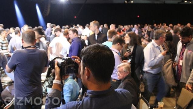 Our butts are in seats! Mine and the rest of the press corps, I mean. Sean Hollister here reporting live from WWDC 2015, liveblogging the living daylights out of whatever happens. I’m expecting a lot of software, a music streaming service, and *maaaaaybe* a new Apple TV.