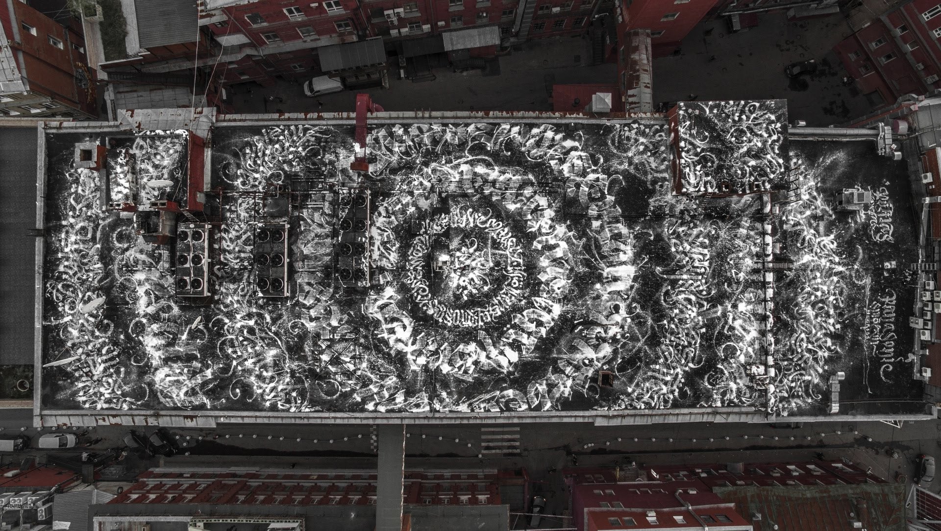 Painting a rooftop with calligraphy graffiti looks like so much fun