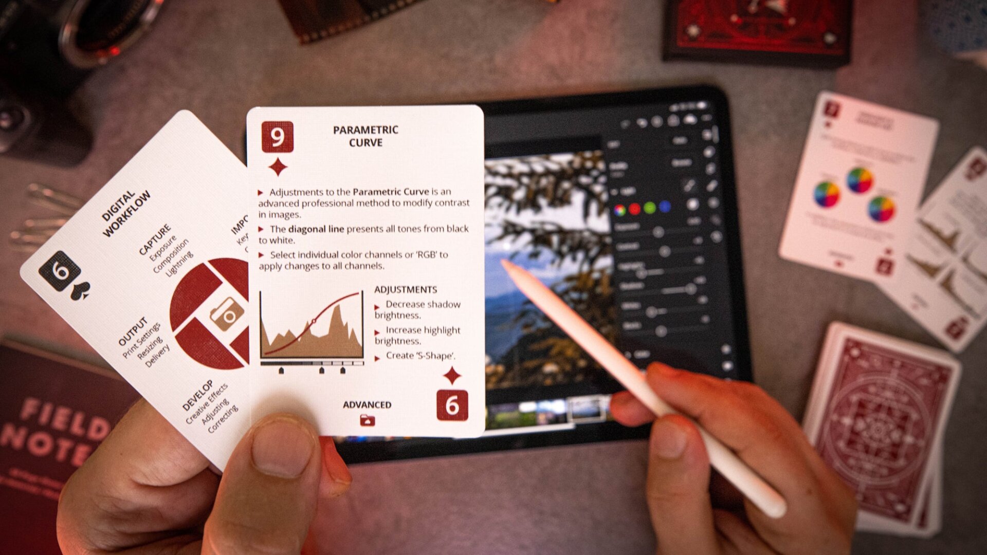 The cards don’t function as step-by-step tutorials for common post-processing tasks, but instead explain the fundamentals of tools and concepts like color spaces, EXIF data, curve adjustments, or even the concept of layers, which are an important thing to first master before moving on to other features of a complex application like Photoshop. For those who were lucky enough to have high school science teachers that let them bring in cheat sheets for exams, this is the same idea—except you don’t have to crib the notes yourself.