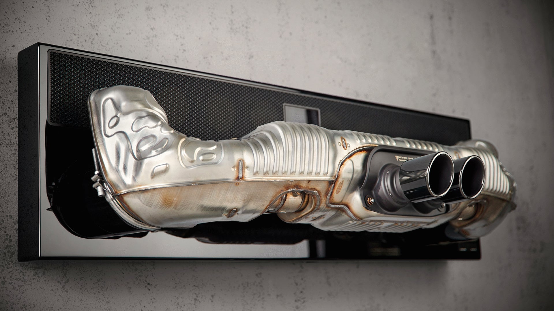 Unfortunately, on the soundbar, the welded metalwork and polished chrome exhaust pipes aren’t functional. As novel as it would be to have all the sound pumped through there, the soundbar simply wouldn’t sound like a $12,000 piece of high-end audio gear.