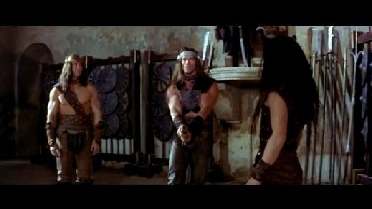 Everybody remembers the “what is best in life” speech from the original Conan the Barbarian, but do you remember the “training in the East” sequence that comes before it? Where the enslaved Conan is stuck in a cage and “bred” with women? Where he swishes his sword around and grins like a complete maniac?