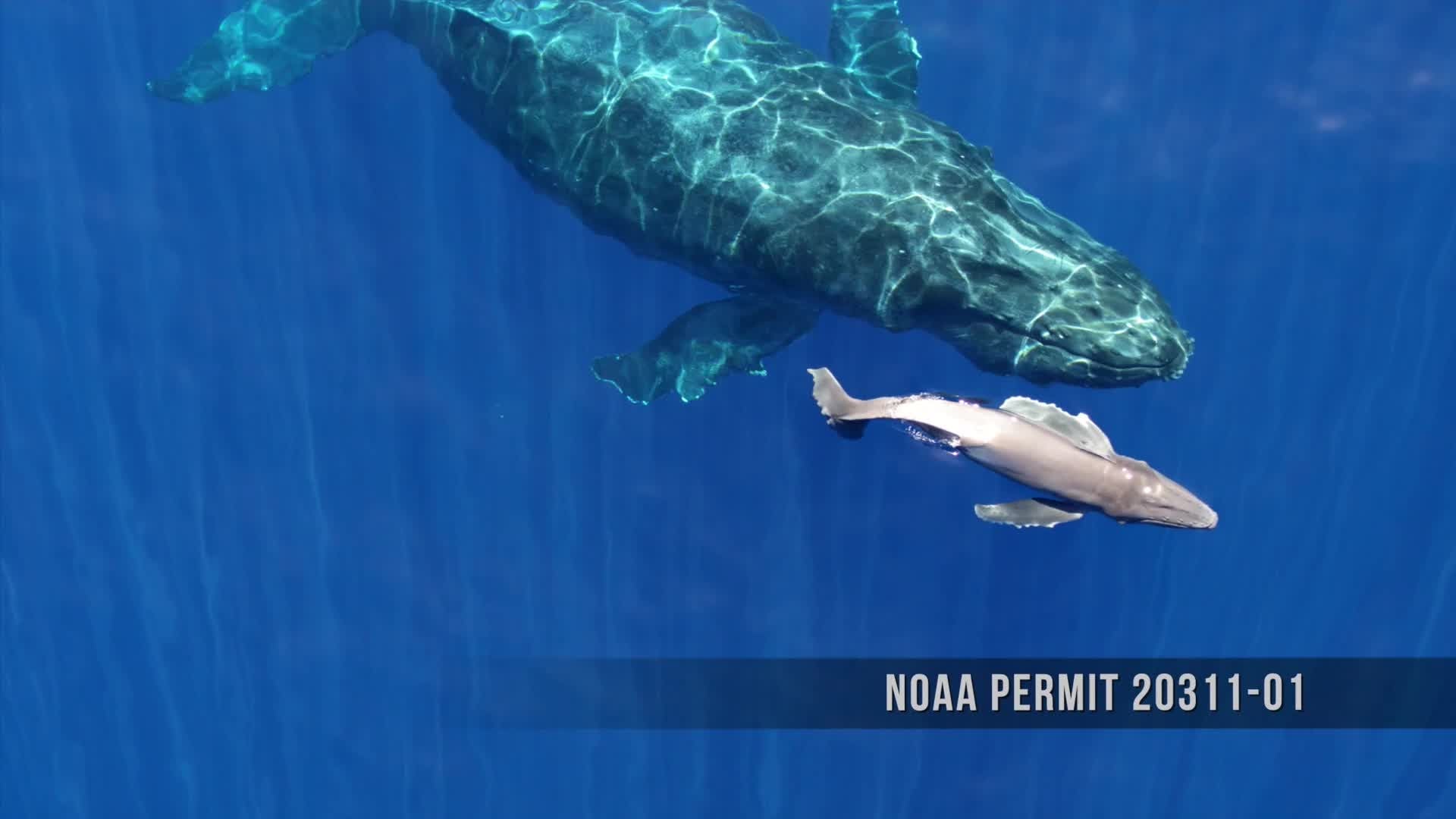 Remarkable new video from Hawaii shows a humpback whale calf swimming through Pacific waters just minutes after being born.