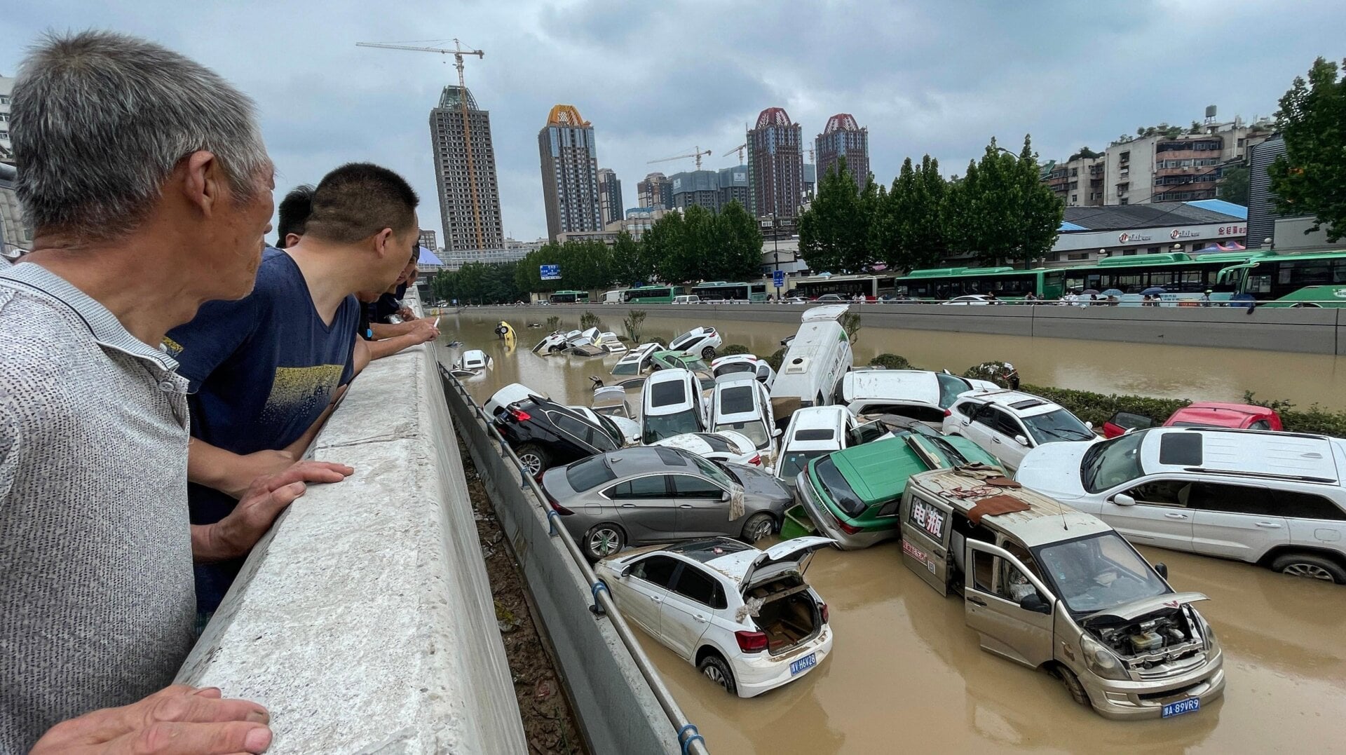 While urban flooding is common in China, the rainfall that unleashed these floods was record-setting. The annual rainfall average for Zhengzhou is 25.2 inches (64.1 centimeters), but 24.3 inches (61.7 centimeters) fell in the city between Saturday and Tuesday alone. The level of rain, state meteorologists said, was a “once in a thousand years” event, and the heaviest rainfall in Zhengzhou in 60 years. The heaviest rate of rainfall in the city reached 7.95 inches (20.2 centimeters) per hour over the weekend, beating the previous record of 7.81 inches (19.9 centimeters) set in 1975.