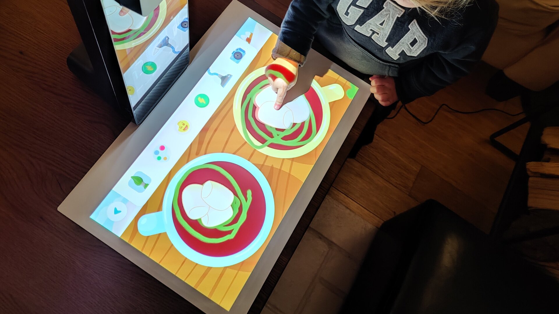 My kid and her grandpa tried drawing together, but she didn’t quite grasp the concept that he was drawing on his end. She saw Grandpa appear on screen as he does on the Portal Go, and her face lit up. But as the paintbrush started moving on its own on the projection area, she seemed annoyed something was interfering with her masterpiece. Then, she got bored, and Grandpa ended up conferencing with us instead.