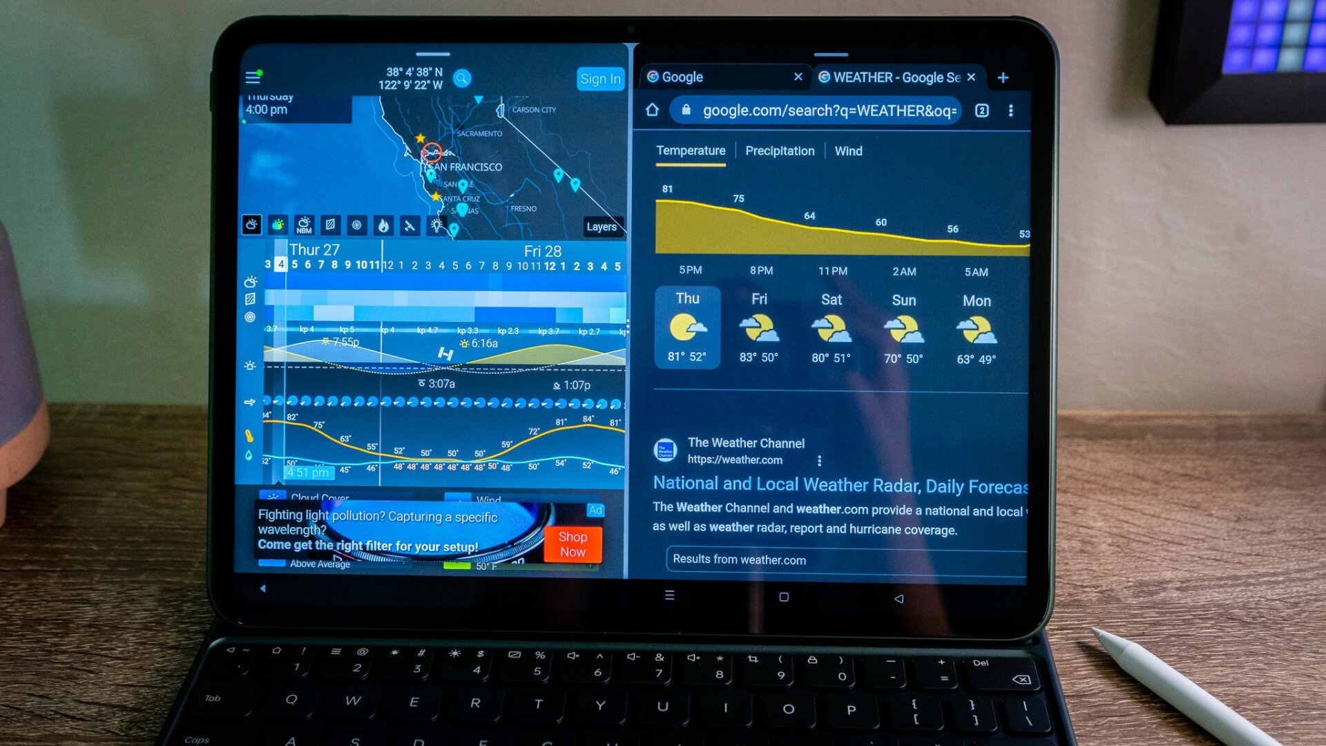 Integral to the OnePlus Pad experience is its accessories—I wouldn’t suggest buying this gargantuan tablet without considering the $150 OnePlus Magnetic Keyboard, which latches onto the Pad via a three-point pogo pin and an assortment of strategically placed magnets. You should still have a nice, solid surface if you attempt to type anything on this tablet with the physical keyboard. The case isn’t the sturdiest, and a few times, the OnePlus Pad slipped out of the enclosure as I set it up.