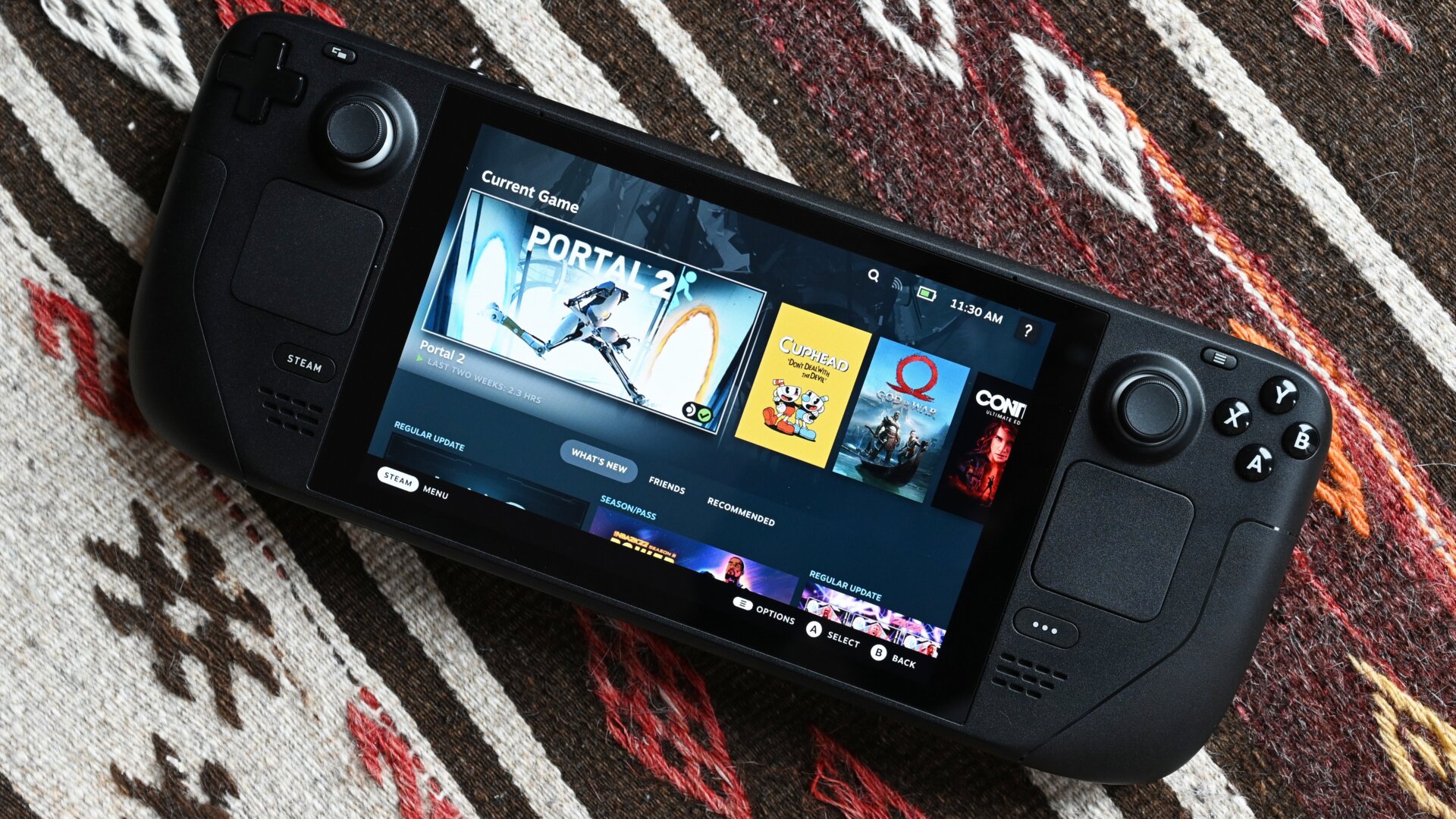 If you don’t like the Steam Deck’s controls, the console can connect via Bluetooth to a mouse or other controllers. Bluetooth pairing to my PS5 DualSense controller was effortless and the Steam Deck immediately responded to its inputs. Some games, like God of War, didn’t answer the call, while others, like, Portal 2, brought me back to sleepness college night of playing co-op mode on PS3.