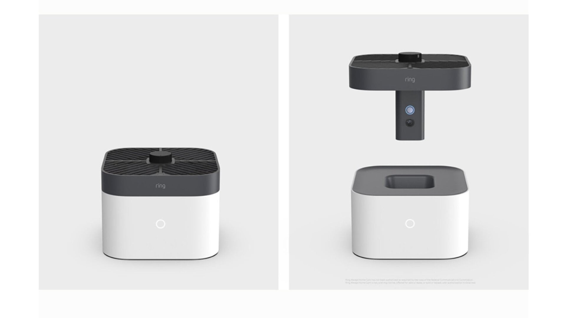 Based on Amazon’s press images, the Always Home Drone features a set of rotors on top enclosed in a plastic shroud, along with a camera built into a rectangular shaft that hangs below. When not in use, the shaft docks into the Always Home Cam’s cradle, presumably to recharge and offload any backup video recordings.