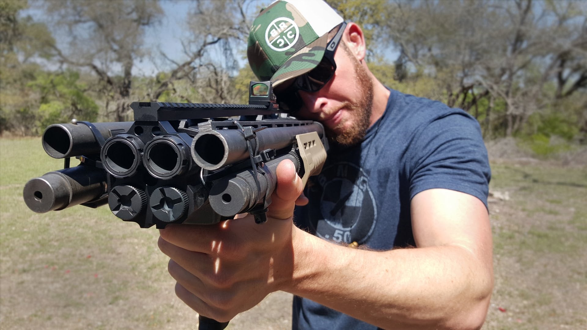 Wow. Let’s never ever be on this end of a gun barrel in real life but seeing the slug shoot out from this homemade quad barrel shotgun is really, really impressive. The homemade weapon is pure insanity—like something only fit for a comic book villain—because it’s four shotgun barrels in one but seeing it fire in slow motion is unreal. You can basically see the bullet dance in the air.