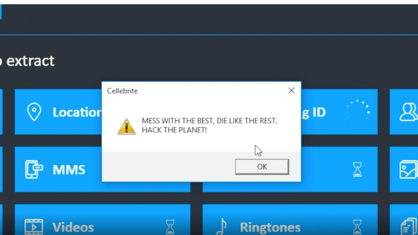 The blog even includes a video, spliced with scenes from the movie Hackers, that shows just how easily Cellebrite’s software can be hijacked: