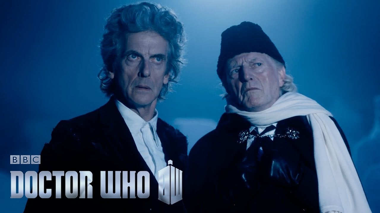 David Bradley’s first line as the Doctor in this footage—which also has original First Doctor William Hartnell’s performance from decades ago merged into his—are his lines to Cybermen from “The Tenth Planet,” the story in which he regenerated, which tells us exactly where in the timeline the Twelfth Doctor is meeting his first incarnation.