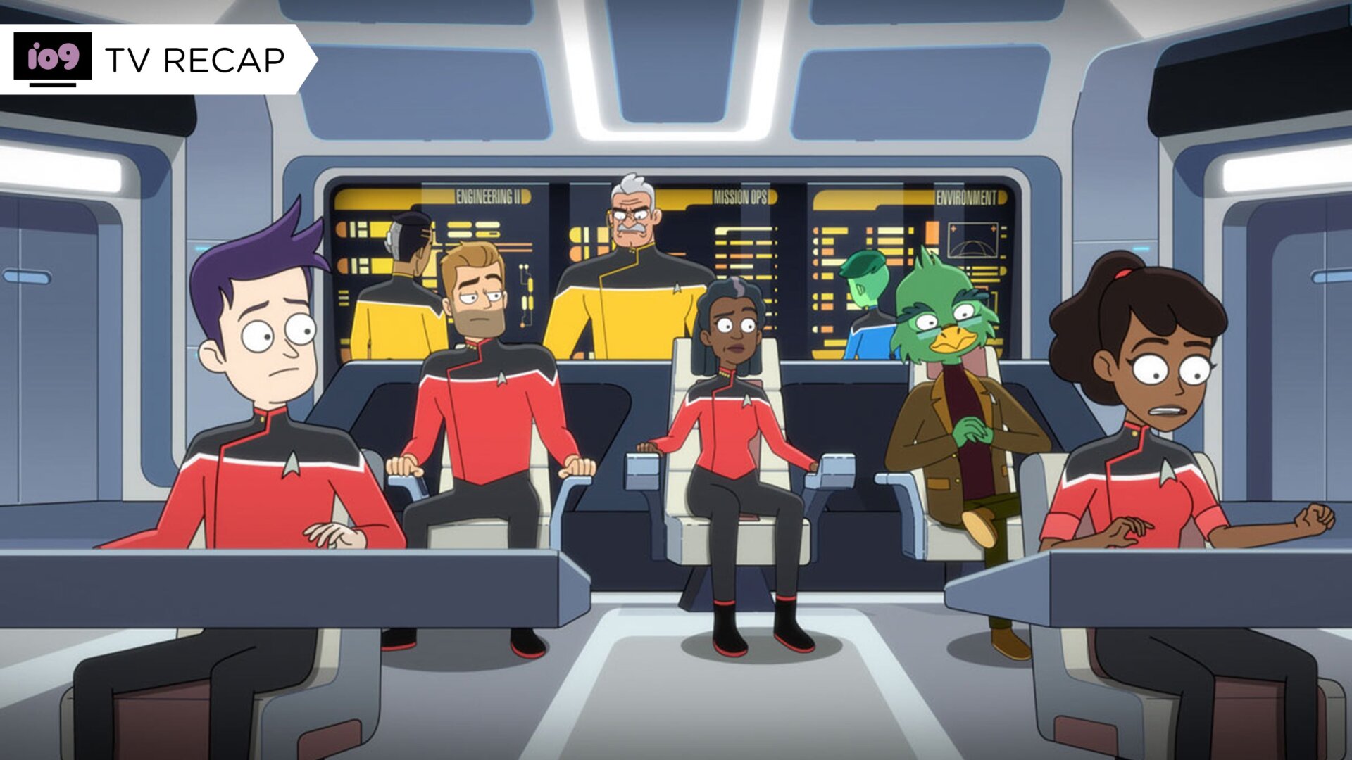 That’s the gag, really, and in Lower Decks’ first season finale, her short appearance being pretty much about the fact that she’s a terrible person-slash-computer works because that’s just it. Peanut Hamper reveals she sucks, and then she’s gone, and that’s funny! But asking us to sit with a character who existed to be so explicitly unlikeable for an entire episode from their perspective—a perspective that, for the most part, still sucks, and we’ll get to that—is a really tough ask. And Lower Decks comes so close to making it work.
