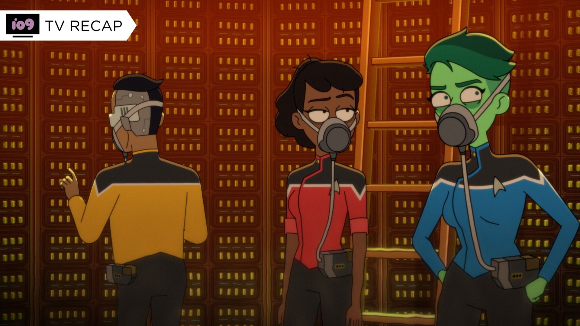 Meanwhile, aboard the Cerritos, the rest of the team face an altogether more humbling version of a similar lesson. Tasked with finding a single faulty isolinear chip in a room storing hundreds—one that, for good measure, occasionally expels hazardous gas, which seems bad on a starship!—Mariner, Rutherdford, and Tendi are faced with the frustration that they’re still stuck doing shitty jobs in spite of the recognition their promotion is meant to bring. Hatching an elaborate plan of vengeance that involves an accidental sideward step into Deep Space Nine’s worst episode—that in turn ultimately leads them to reconsider their vengeance and instead embrace that they’re still going to be dealt a shitty job from time to time is a nice bit of humbling. But it’s also like the show is reminding us that while its dynamic is growing, it’s not becoming an altogether different show this season.