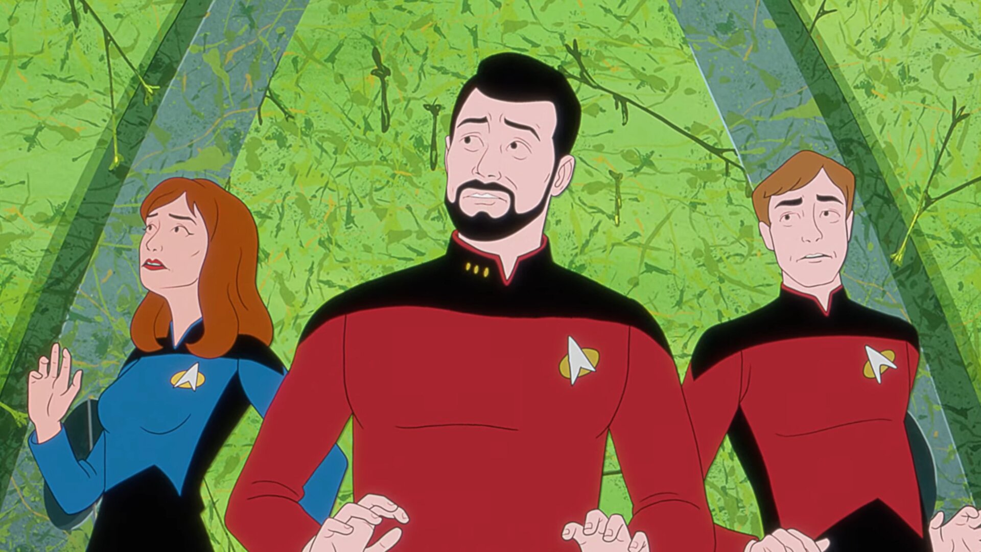 While the prior shorts were of similar low-brow humor, there’s just something about this one in particular that strikes the sort of thing Trek fans feared Lower Decks could be before it aired—where Trek itself is as an ugly joke, rather than the medium for humor, that its ideals of multi-species co-operation can be undone by snot and microwaved fish.