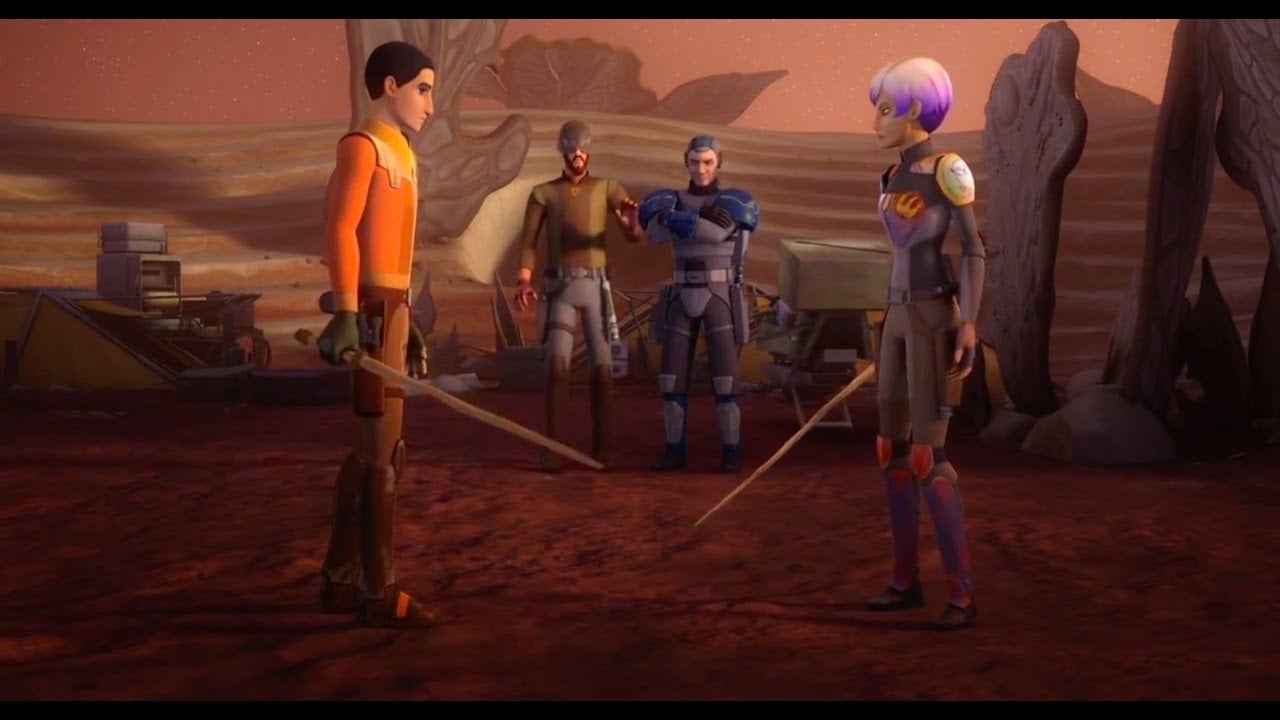 This weekend’s episode, “Trials of the Darksaber,” gave us a ton of new backstory for the titular weapon, which, turns out, is an ancient lightsaber originally wielded by the first Mandalorian ever inducted into the Jedi Order, Ta Viszla. But it also gave a chance for Kanan to discuss the Order’s less-than-pleasant history with the Mandalorians since the Darksaber’s creation. While training Sabine to use the weapon, Kanan casually reminds the cocky young Mandolrian that, “History lesson—the Jedi won the war with Mandalore.”