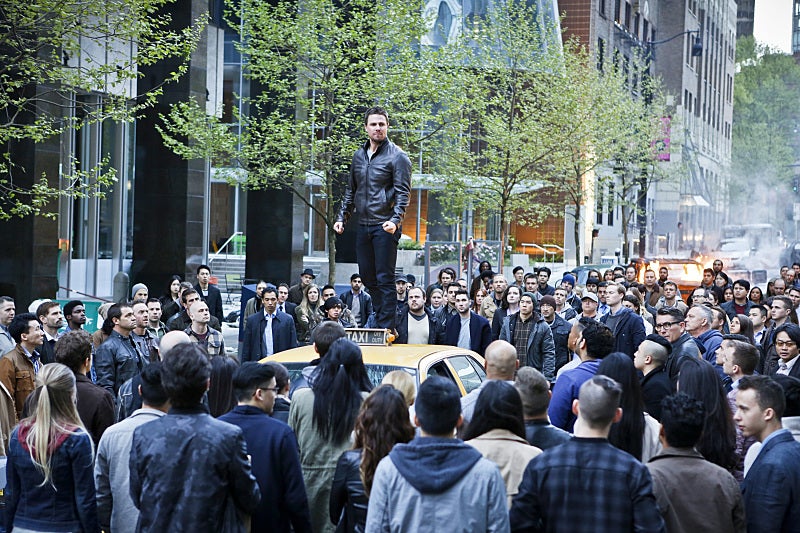 It’s DC/CW blowout as Marc Guggenheim teases the future of Legends of Tomorrow, Grant Gustin discusses Barry Allen’s journey on The Flash, and there’s new pictures from Arrow’s season finale. Jennifer Lawrence talks about her future with the X-Men franchise. Plus, a new Teenage Mutant Ninja Turtles 2 clip. Behold, spoilers!