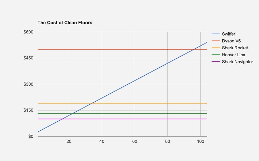 Cleaning sucks. Sure, it’s nice and satisfying when you’re done, but stuffing your hands in dirt and swabbing filth around the floor is basically unpleasant. There’s no need to make it more unpleasant by letting a multi-billion dollar conglomerate rob you blind. Put differently: You should stop Swiffering and buy a nice vacuum.