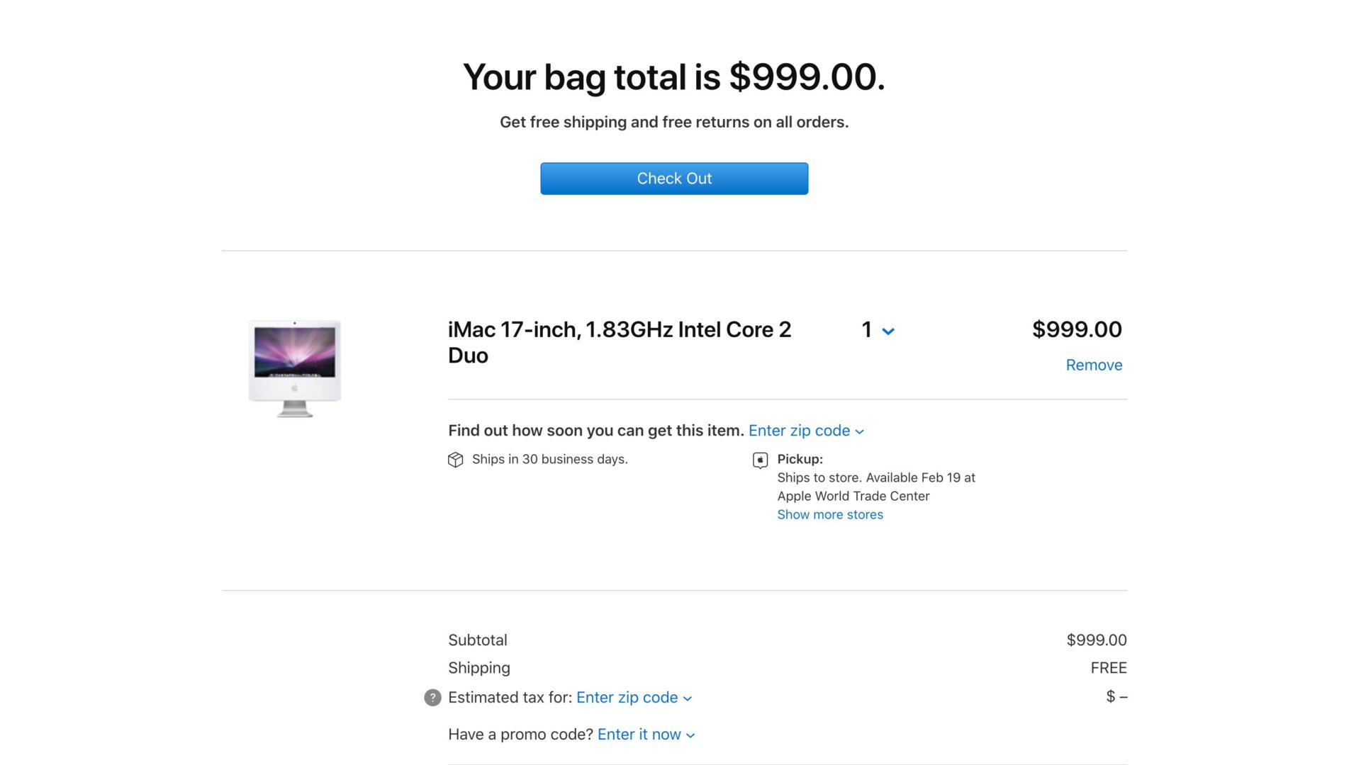 Apple products are notoriously expensive, but this is just ridiculous. Apparently, Apple’s website is still listing the 2006 iMac 17-inch 1.83-GHz Intel Core 2 Duo for around $1,000—depending on where you’re trying to buy from.