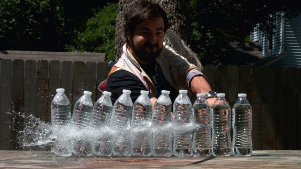 When people fantasize about being ninjas, they’re not day-dreaming about sneaking up on their enemies; it’s all about the sword play. The Slow Mo Guys are no exception, and realized that playing around with a katana sword would result in some spectacular slo-mo footage. It takes a few harrowing practice swings to get the sword…