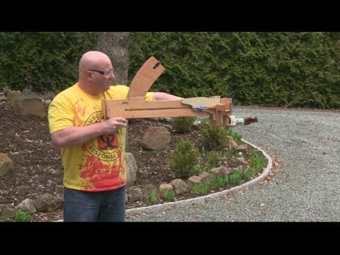 What is there to even say? Joerg Sprave dreamed up a slingshot that shoots glass ashtrays and has a broken beer bottle attached as a bayonet. It’s all pretty legit. The slingshot is pump-powered and holds four ashtrays at a time (three in the clip plus one in the chamber). It’s accurate at close range…