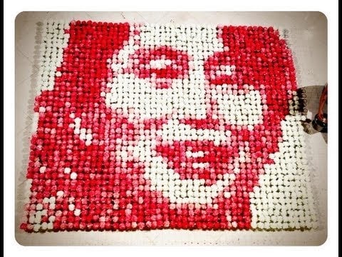 Over the years a talented artist by the name of Hong Yi has created portraits using obscure mediums like stacked books, coffee cup stains, basketballs and paint, and even melted candles. And now she’s back with one of her most tedious creations to date: a portrait of Nobel Peace Prize winner Aung San Suu Kyi…