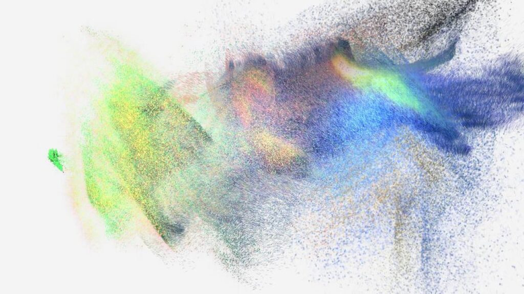 This computer-generated cloud of color interacts with its soundtrack to produce a haunting, yet oddly cheerful, video. You have to watch it: it’s beautiful. It was created by Seiichi Hishikawa, and the brightly-colored graphic renderings perfectly track the sound-scape produced by Tatsuya Yamada. To be honest, it belongs in a gallery, projected on to a…
