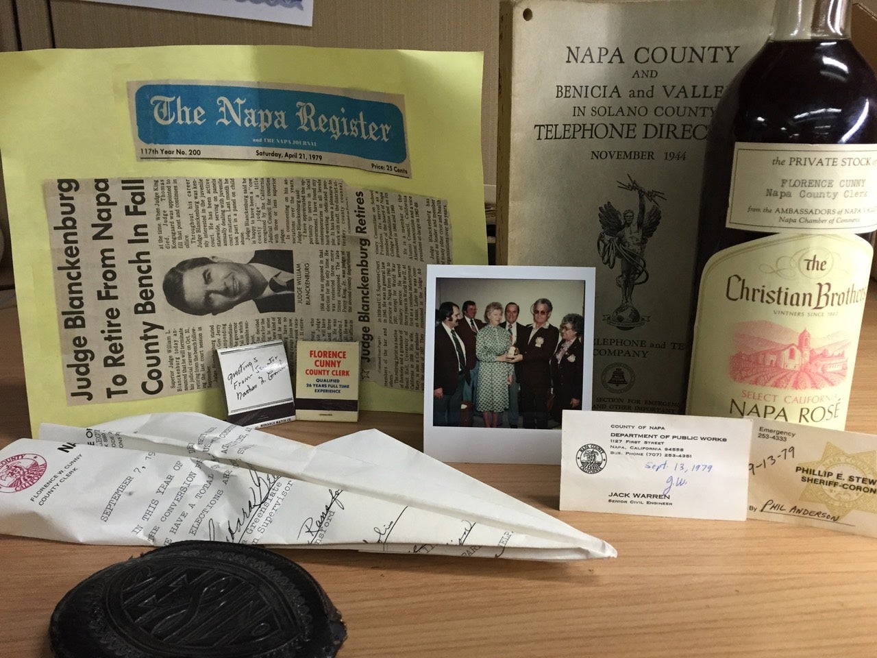 “It wasn’t one of those steel box affairs, but rather an assortment of ephemera from the courts during that period; business cards, newspaper clippings, matchbooks, two live rounds of ammunition, and a bottle of rosé,” John Thill from the Napa County Library told me.