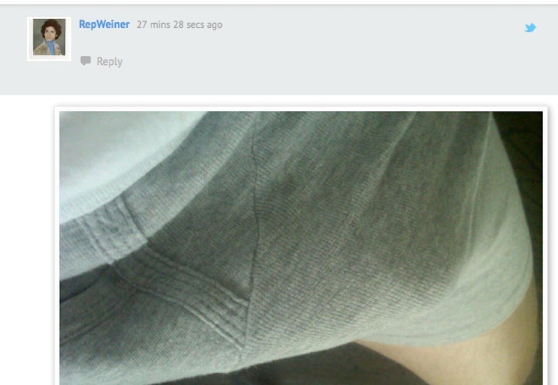 Weiner first claimed that he had been hacked, tweeting, “Tivo shot. FB hacked. Is my blender gonna attack me next? #TheToasterIsVeryLoyal” And some of the old news stories took at face value the idea that Weiner’s account had been compromised by an unknown hacker.