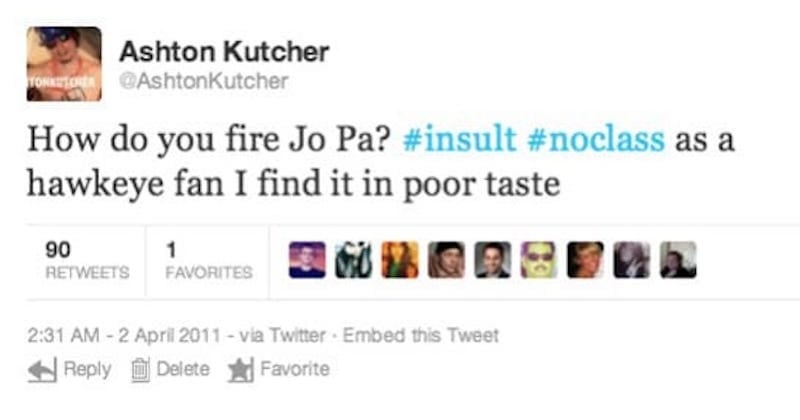 And if you’re going to tweet about Paterno and Sandusky, maybe use the words “poor taste” to describe their acts, not their punishment. Sound like a deal, Ashton?