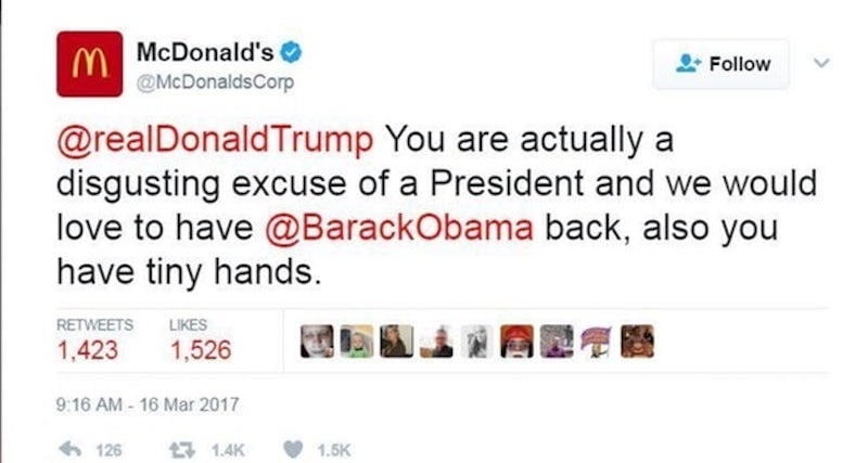 Back in March of 2017, McDonald’s sent a curious tweet directly to President Trump.