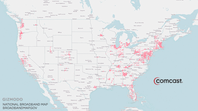 According to opponents, the merged companies would have controlled 50-percent fo the country’s broadband. This crude GIF cobbled together a year ago gives you a sense for just how extensive the cable giants’ merged broadband footprint would have been.: