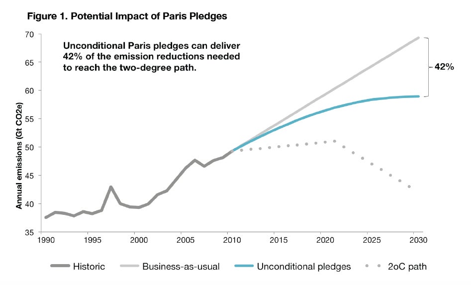 One possible—although certainly not ideal—outcome of the Paris climate summit is that every country will agree to fulfill its INDC pledge and not an ounce more. Here’s what that would mean.