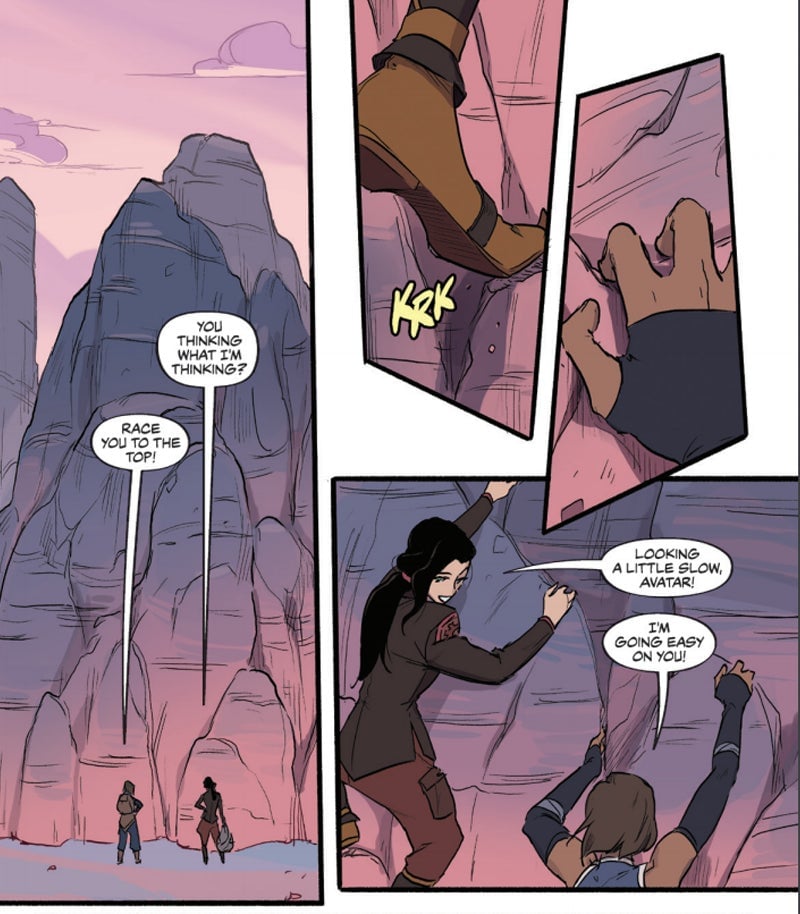 In that way, Turf Wars could feel like it’s a bit more setup than some would like—especially after fans have waited so long for the comic to come out. But while it also spends a lot of time establishing a new arc for Korra and her friends to go on, it spends just as much time examining the relationship between Korra and Asami that fans have been dying to see ever since the show came to an end. Honestly, it’s much more satisfying on a character level than in terms of its story.