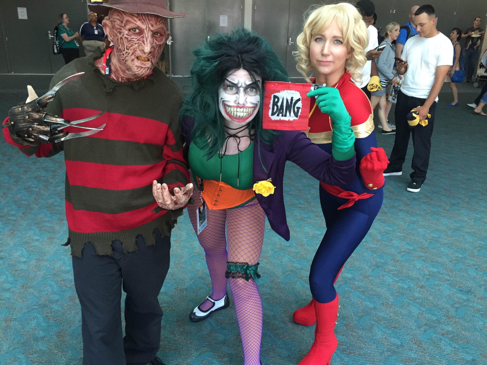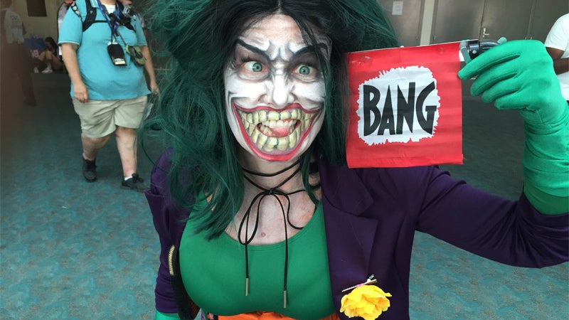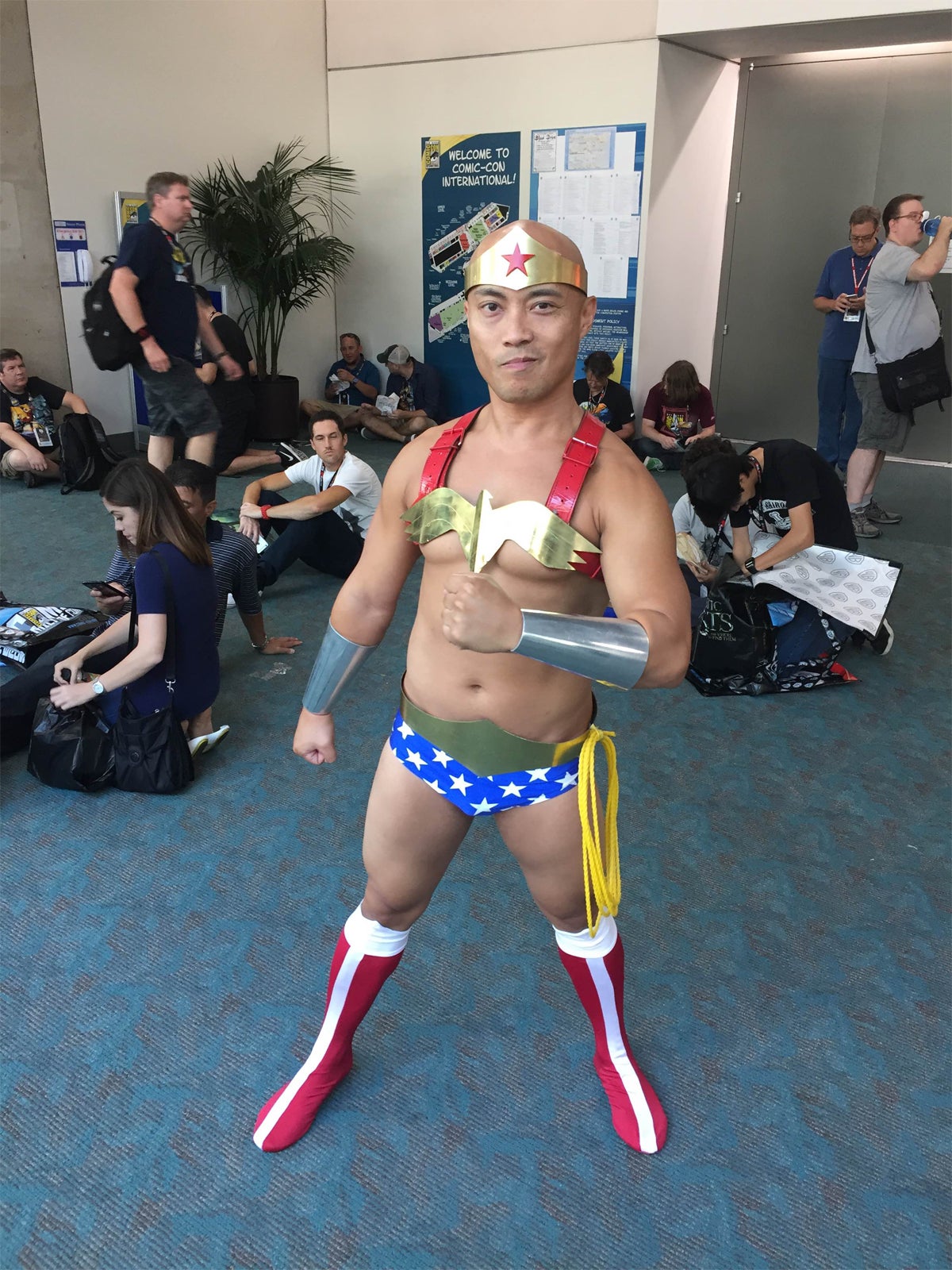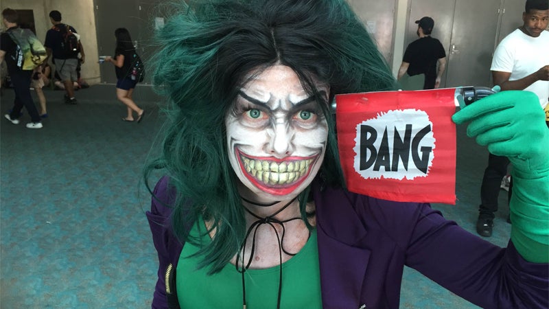 The Princess of the Amazons stands ready. Image Credit: Evan NarcisseA Flash, and a few Marvels. Or I guess Shazams, now. Image Credit: Evan NarcisseKatana, Black Bat, and Robin. Image Credit: Evan NarcisseFreddy Kreuger, the Joker, and Captain Marvel strike a pose. Image Credit: Evan NarcisseA knitted Gimli! Image Credit: Evan NarcisseVanellope rides into action. Image Credit: Evan NarcisseKiss Kiss, Bang Bang… Image Credit: Evan Narcisse.. and open wide! Image Credit: Evan NarcisseYes, we’re through the “Sexy BB-8 Cosplay” looking glass. Image Credit: Evan NarcisseThe former Ms. Marvel. Image Credit: Evan NarcisseSquirrel Girl is here, Comic-Con can truly begin! Image Credit: Evan NarcisseWonder Man! No, not that one. Image Credit: Evan NarcisseIt’s High Noon somewhere for this McCree from Overwatch. Image Credit: Evan NarcisseBatman v Superman’s Batman, and Nightwing. Image Credit: Evan Narcisse