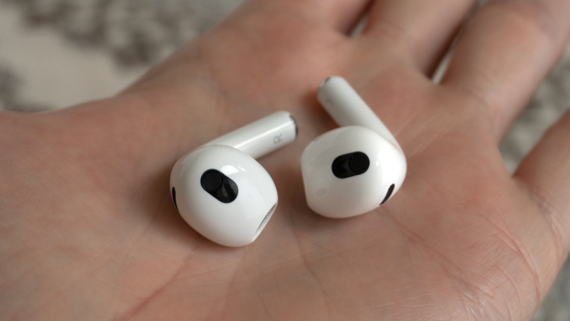 The third-gen AirPods are a little smaller than the AirPods Pro, which makes sense given that they lack active noise cancellation hardware, and can also get away with a smaller battery without that feature.