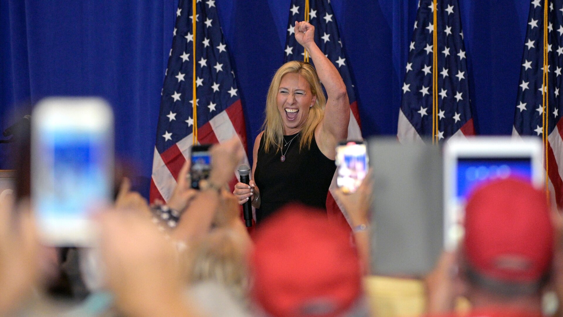 Of the incumbents, God help us, there are Republican Congressperson Lauren Boebert (R-CO), who has feigned ignorance of QAnon despite claiming to be “very familiar” with QAnon, appearing on QAnon shows and evidently following QAnon channels on YouTube. There’s two-term Florida state representative Anthony Sabatini, who tweeted a link to Q drops last year. And Congressgoblin Marjorie Taylor Greene (R-GA), who lately compared vaccination badges to the Holocaust and has been rallying with Matt Gaetz.