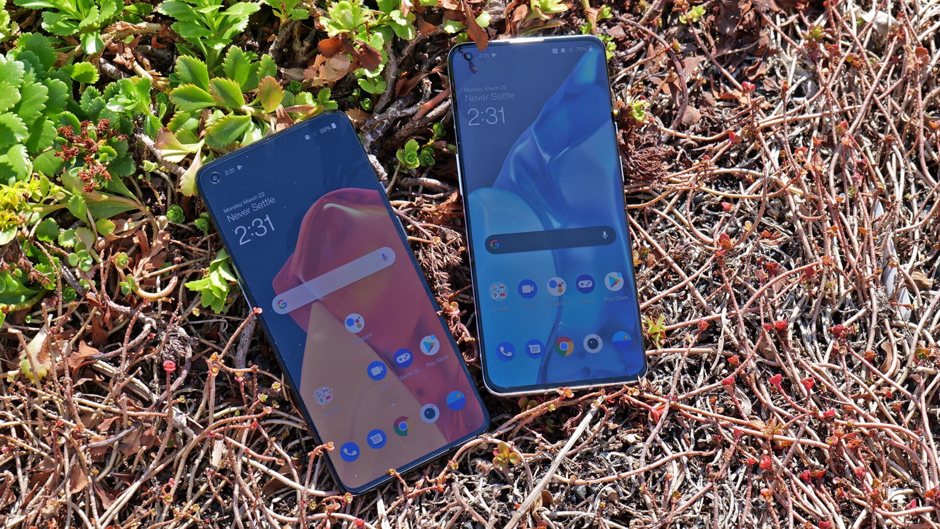 In a photo I captured of some tulips, the regular OP9 captured strong dynamic range and good details, even on the inside of the flower. And at night, OnePlus’ improved Nightscape mode kept up with Samsung’s dedicated low-light mode, with the OnePlus 9 Pro even capturing a sharper looking (possibly a bit over-sharpened) photo when zoomed in 3x compared to the Galaxy S21. Even ultra-wide shots from the OP9 and OP9 Pro largely lived up to OnePlus’ claims that its new “free-form” lens helps cut down on the barrel distortion you typically see in wide-angle photos.