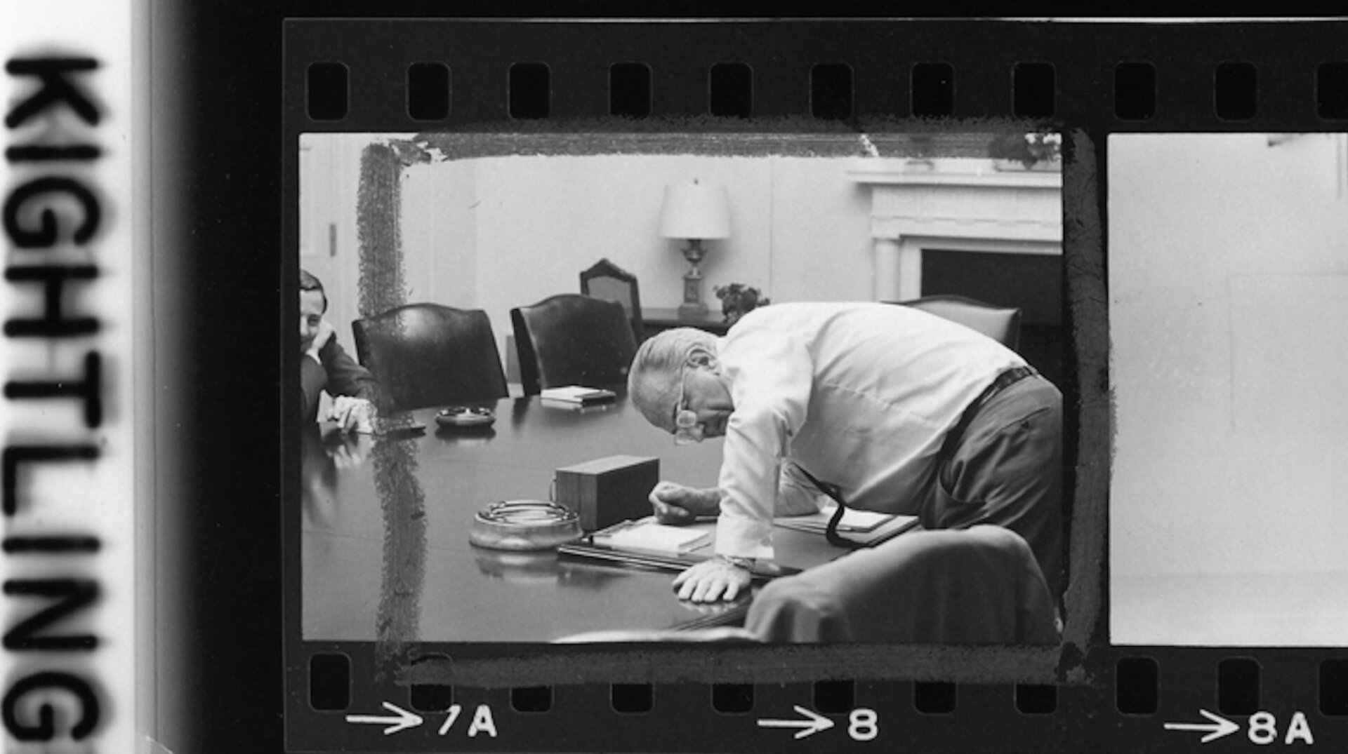 There’s a photo of President Lyndon B. Johnson currently circulating on Twitter that purports to show LBJ overcome with emotion at the thought of so many deaths during the Vietnam War. It’s an iconic image, but the photo is being taken out of context. In reality, Johnson probably isn’t mourning the deaths of 40,000 U.S. soldiers in the summer of 1968. He’s positioning his head so that he can understand what’s being said on an audiotape recording playing from the speaker in front of him.