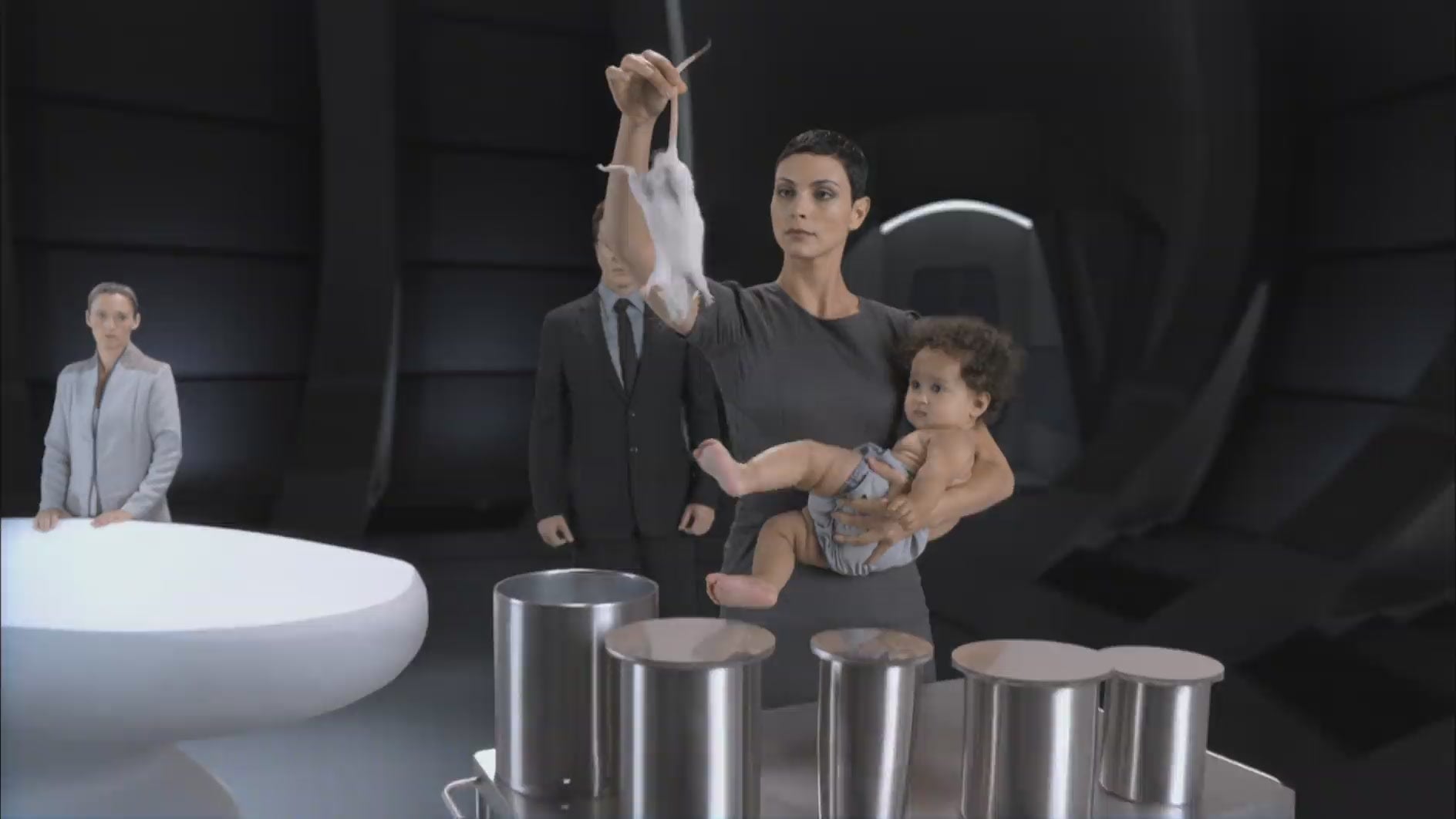 What’s Morena Baccarin doing with that giant rat? And that baby? Here’s an exclusive high-res image from tomorrow night’s V episode, in which we finally get the rodent mistreatment we’ve wanted all along. Spoilers below.